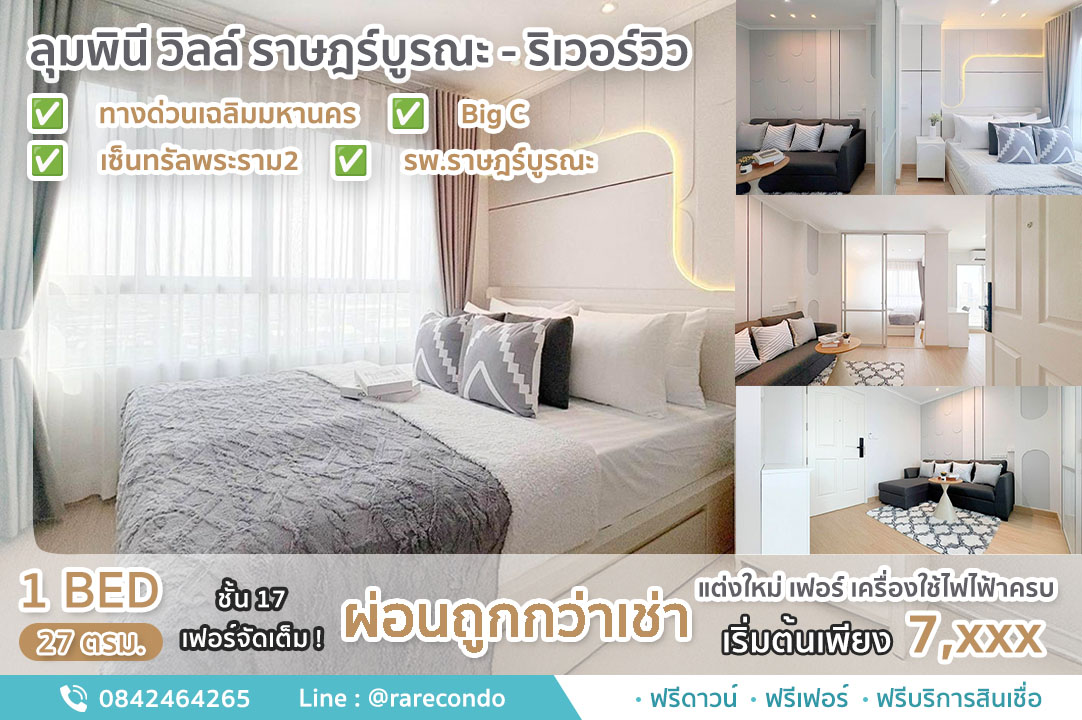 ลุมพินี วิลล์ ราษฎร์บูรณะ - ริเวอร์วิว • ห้อง 27 ตร.ม ชั้น17
